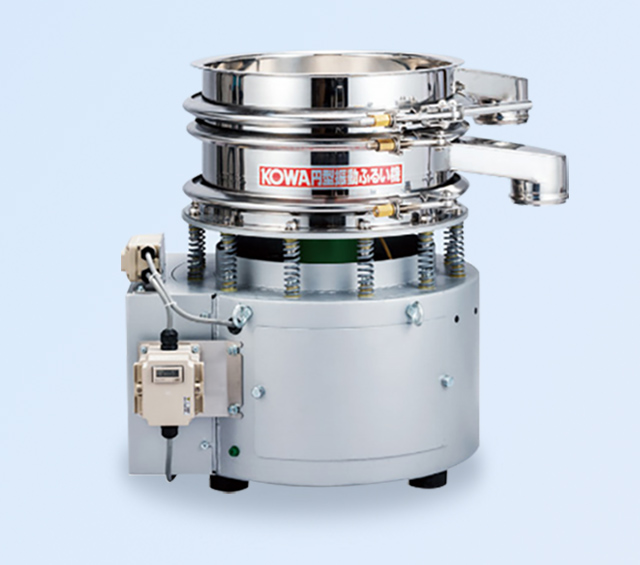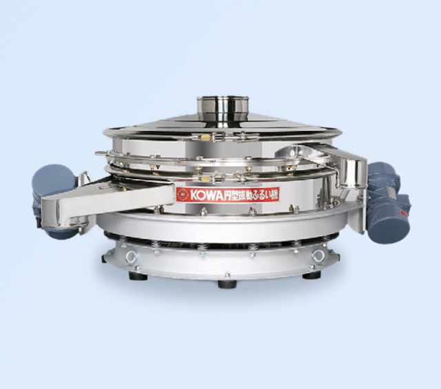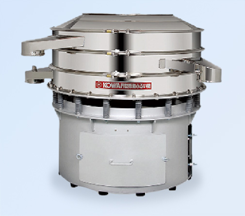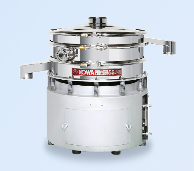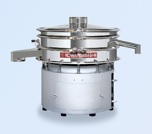 KOWA 振动筛分机将驱动部(电机部)和振动体分开,将通用电机的旋转运动高效地转化为水平、垂直和倾斜的三维运动。这种丰富的三维运动可以筛分任何材料,并被广泛应用于金属、化学、陶瓷、医药、食品和其他回收行业。