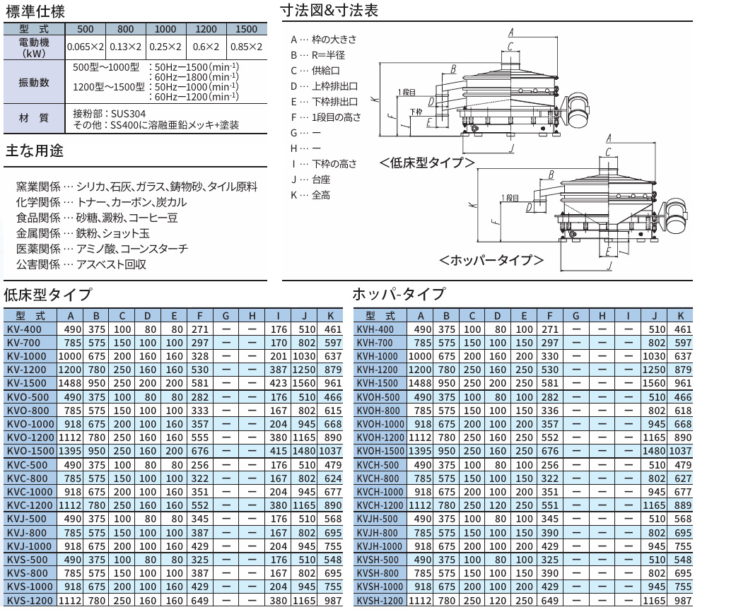 ふるい機の設置スペースが狭い場所で異物除去を目的としたふるい機です。また、ホッパータイプにすると直下型になるため、大量処理が可能になります。